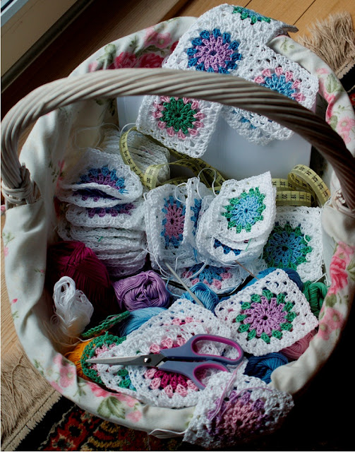 Kilka dni temu zrobiłam kilka kwadracików i codziennie muszę ma chwilę przysiąść i kilka udziergać...mam już prawie połowę...będzie narzuta na łóżko córeczki..kolorystyka dziewczęca...